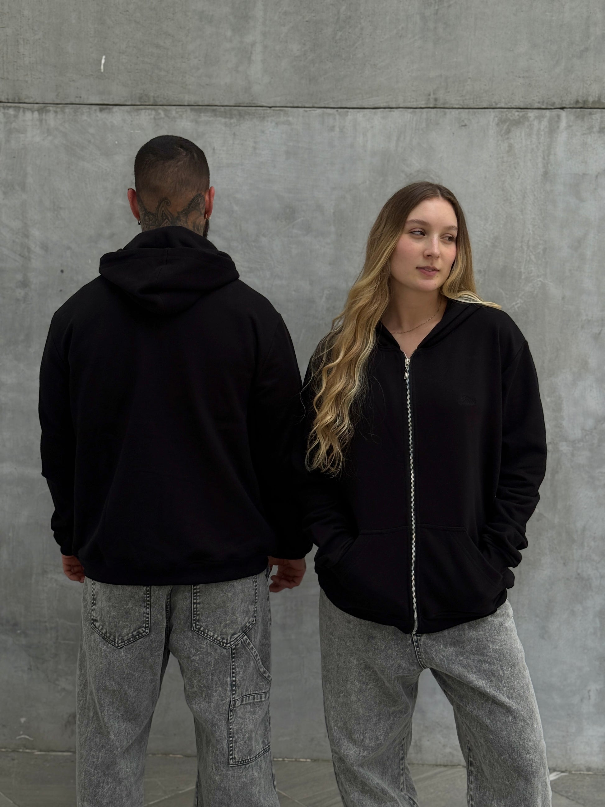Hoodie en Fit oversized, algodón premium tela tipo burda de 360gr, puño y cintura en RIB, Cremallera y bordado "FAITH" tono a tono