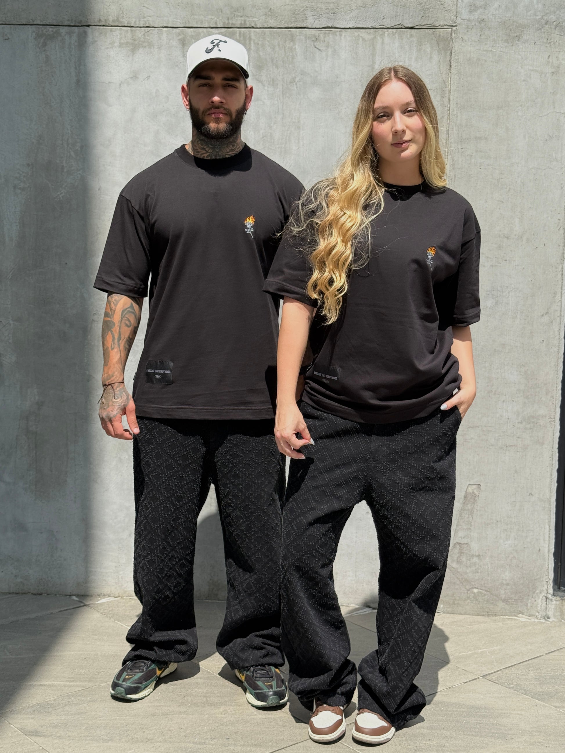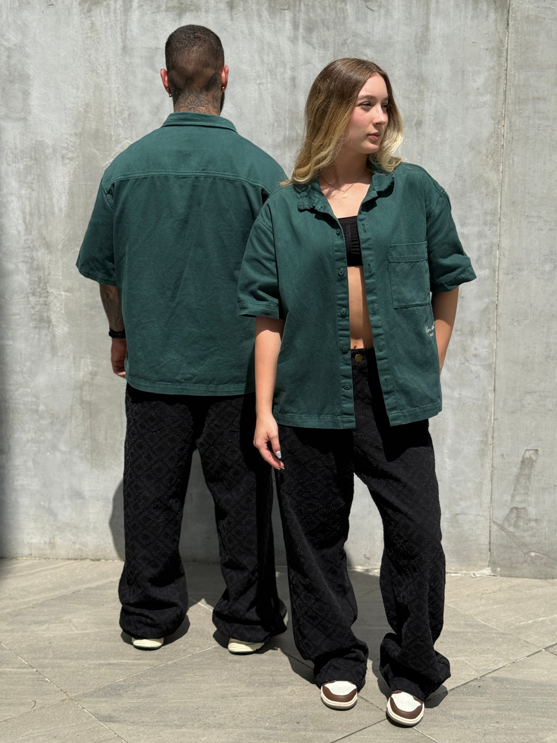 Pantalon Baggy Denim en color Negro, Figuras geométricas en láser . tela 100% algodón (12,5 onz).